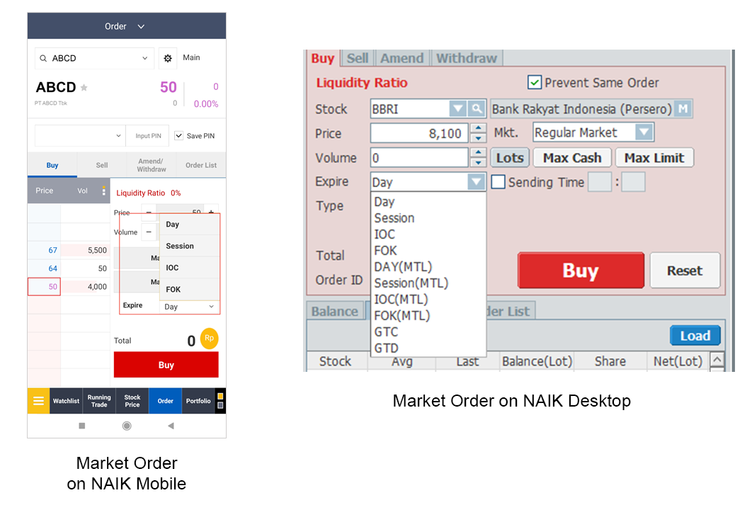 - Day (MTL): Investors designate only the stock and quantity they want, and place a trading order at the current or to-be-formed price without directly designating the price. Choose this order if you want to be sure that it is executed right now in the fastest time possible. Market orders continue to buy or sell until the quantity is filled.