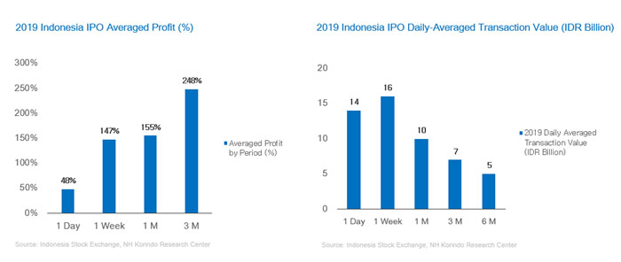 In Indonesia IPO Market, there are two things that you need to know. First of all, the averaged profit after three months from the listing date was about 240%(+/-) from offering price. Second, its daily-averaged transaction valuation was significantly small to do exit. Based on our research comment, it is because of the lack of recognition on the capital market and high deposit-interest from banks.
