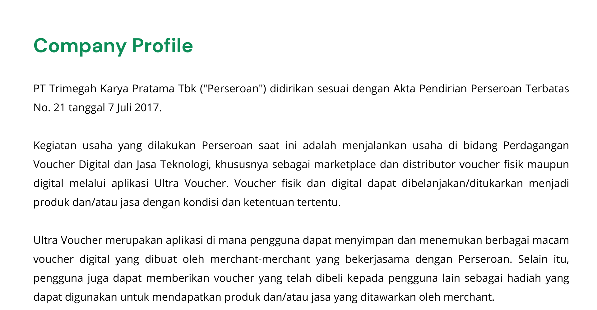 Information of PT Trimegah Karya Pratama Tbk (UVCR) IPO