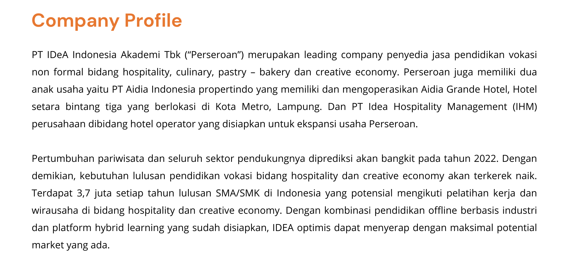 Information of PT Idea Indonesia Akademi Tbk (IDEA) IPO
