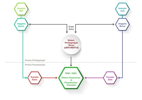 Mekanisme perdagangan Efek di bursa dilakukan dengan menggunakan fasilitas JATS NEXT-G (Jakarta Automatic Trading System). Nah perdagangan ini hanya bisa dilakukan oleh Anggota Bursa yang sudah terdaftar dalam kliring KPEI. Nantinya, Anggota Bursa bertanggung jawab atas seluruh transaksi yang terjadi.